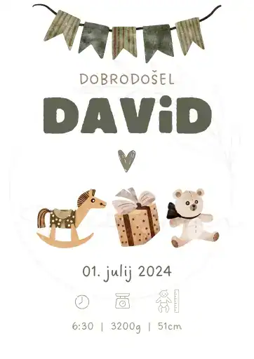 Na ilustracijo dopišem ime otroka, datum in uro rojstva, težo ter dolžino - tako nastane popolnoma unikaten spomin.