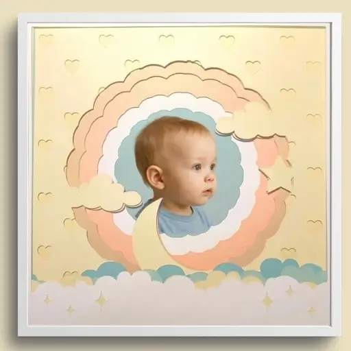 3D slika z motivom Malčkov portret je čudovit spomin na rojstvo ali rojstni dan otroka, ki bo krasil njegovo sobico še dolga leta.