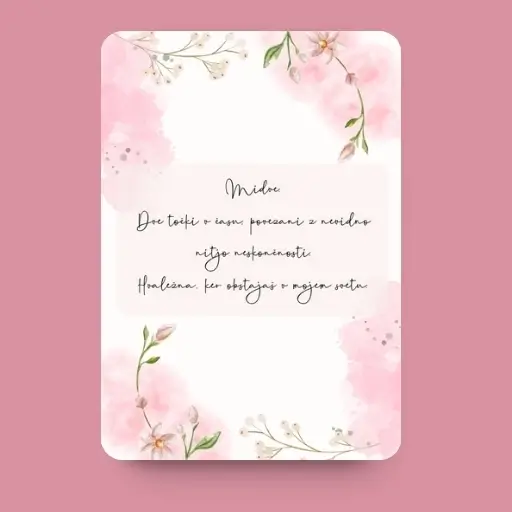 - Priložena kartica s sporočilom nežno zaokroži zgodbo o skupnih trenutkih, veselju in zaupanju.